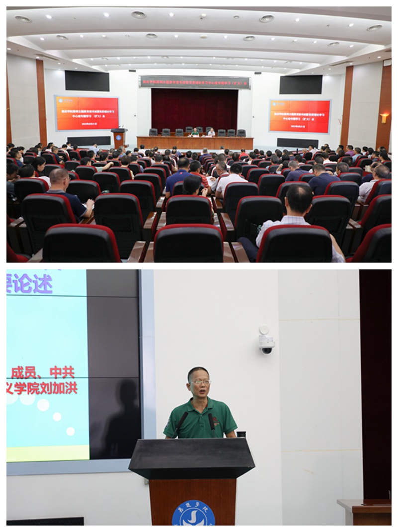 8月21日,我校在国际会议中心召开暑期主题教育读书班暨党委理论学习中心组专题学习(扩大)会。中共梅州市委宣讲团成员、市委党校张明湘副教授,中共广东省委教育工委“百姓宣讲团”成员、中共梅州市委宣讲团成员、嘉应学院马克思主义学院刘加洪教授分别作了专题辅导报告。学校领导、党委理论学习中心组全体成员、全体中层干部、主题教育领导小组办公室全体成员等参加了报告会。